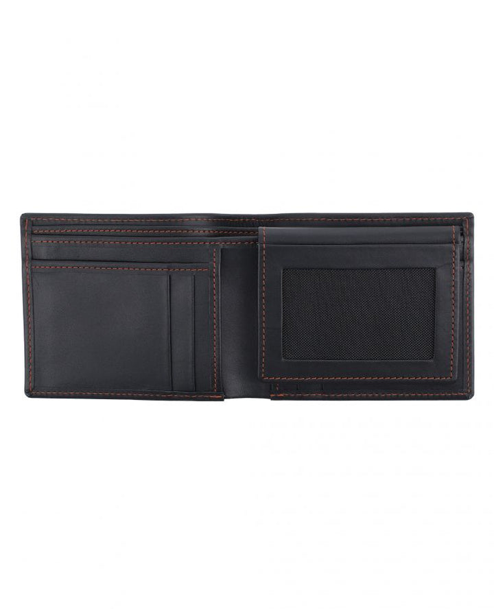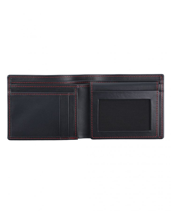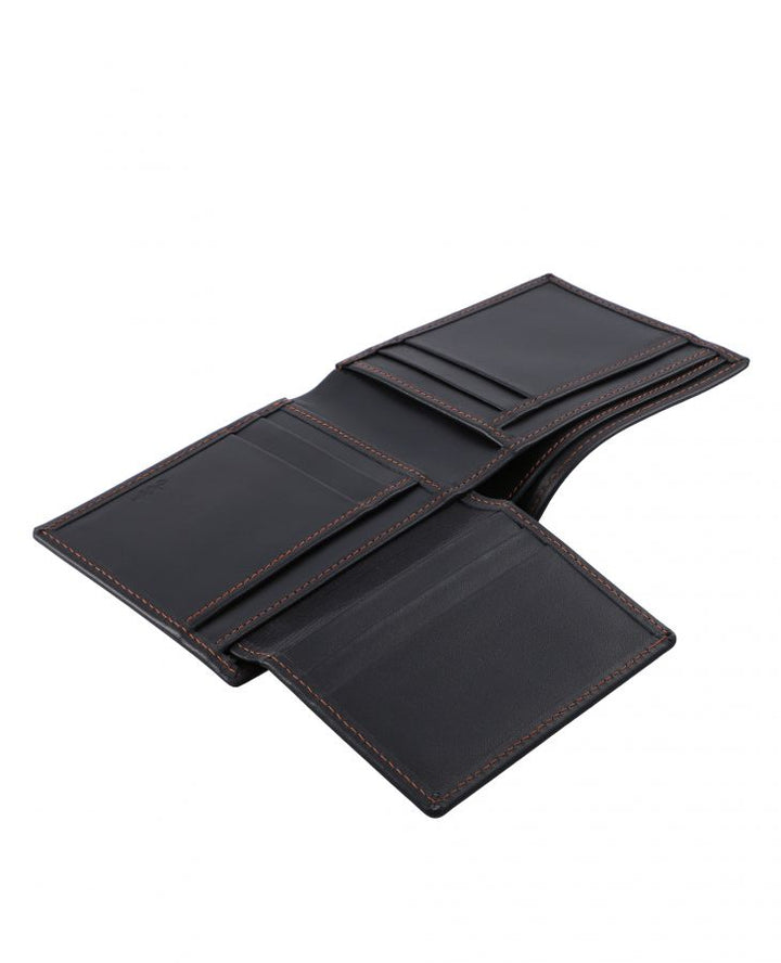 A smart design which combines classic black leather with colored stitching to add a tint to each wallet. This wallet has slots for seven credit cards and cash.FEATURES:
