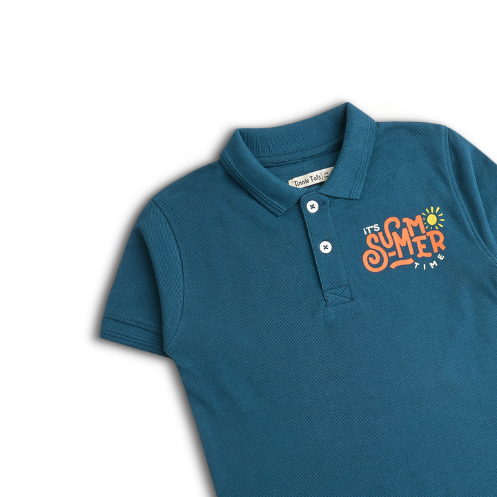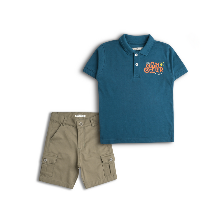 An ultra soft, premium quality 2-Piece Set, consisting of Cotton Pique Polo Shirt and Cotton Denim Cargo Shorts by Tinnie Tots. High quality embroidery and embellishment. Non-Allergic fabric, gentle to the baby skin. Perfect for your summer wardrobe. Highly Recommended for Summers!